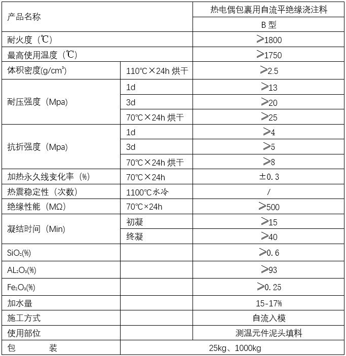 為了適應現(xiàn)代化鋼廠對鋼水測溫定氧的準確性,我公司特研制了熱電偶包裹用高絕緣自流平中性水性填料。產品完全脫離了上世紀80年代研制的酸性鎂質填料,該產品使用自來水攪拌后就可直接澆注偶頭,靜放12小時后就可以進入烤箱烘烤,比傳統(tǒng)酸性鎂質填料縮短一倍烘烤時間就能達到理想的絕緣指數(shù),本產品以其優(yōu)良的自流動性、防潮性、操作簡單性、測溫準確性、高絕緣性、機械強度高、高溫下不變形、不爆裂等點贏得了廣大用戶的一致好評。